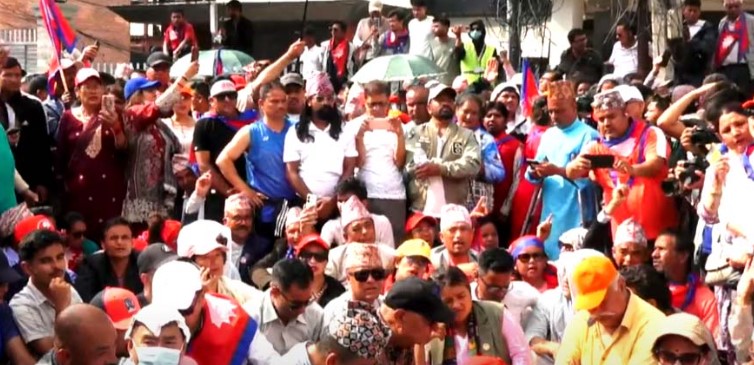 १८ जेठ, काठमाडौं — राजसंस्था पुनर्स्थापना र नेपाललाई हिन्दू राष्ट्र घोषणाको माग गर्दै आन्दोलनमा उत्रिएका राजावादी समूहले काठमाडौंको नारायणचौरमा धर्ना सुरु गरेका छन्। राप्रपाका अध्यक्ष कमल थापासहित पाँच जना नेता तथा कार्यकर्तालाई प्रहरीले नियन्त्रणमा लिएपछि आन्दोलनकारीहरू थप आक्रोशित बनेका हुन्।