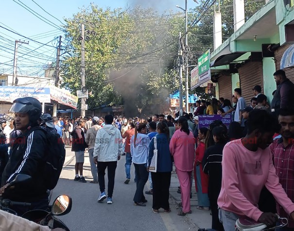सिमरा — सिमरा विमानस्थल क्षेत्रमा बुधबार जेन–जी समूहको प्रदर्शन तीव्र बनेपछि स्थिति तनावग्रस्त बनेको छ। एमाले महासचिव शंकर पोखरेल र पोलिटब्युरो सदस्य महेश बस्नेतलाई प्रवेश रोक्न प्रदर्शनकारीले विमानस्थल छिर्ने मार्गमा टायर बालेर अवरुद्ध गरेका छन्।